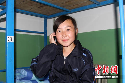 “第一次離開家,爸爸媽媽都很擔(dān)心,趕快給他們打電話報(bào)個(gè)平安!备咭蝗嗟膭⒚罨劭嬷欣蠲Ω胰藞(bào)平安。據(jù)了解,她的姐姐劉妙林是舟曲一中高三年級(jí)的學(xué)生,被安置在銀行學(xué)校!蔽液徒憬愣紩(huì)在新學(xué)校好好學(xué)習(xí)!“劉妙慧甜甜的笑著對(duì)記者說到。