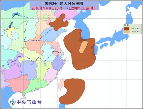 由于“瑪瑙”已遠離我國近海,對我國海區(qū)的影響趨于減弱,因此解除臺風(fēng)藍色預(yù)警。但受“瑪瑙”、西南季風(fēng)和南下冷空氣的共同影響,9月6日20時到7日20時,渤海灣、渤海海峽、黃海北部部分海域、黃海中部和南部的偏東海域、東海東北部、臺灣以東洋面將有6-8級大風(fēng),“瑪瑙”中心經(jīng)過的附近海域或地區(qū)的風(fēng)力可達9-10級,陣風(fēng)11-12級。