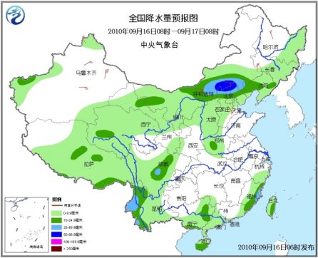 中新網(wǎng)9月16日電 據(jù)中央氣象臺預(yù)報,未來三天,新疆西部、青海、西藏中東部和南部、西北地區(qū)中東部、內(nèi)蒙古大部、東北大部、華北、云南、四川等地有小到中雨或陣雨天氣,其中,內(nèi)蒙古中部偏南地區(qū)、華北中北部、云南西部、遼寧及臺灣東部等地的部分地區(qū)有大雨,局地有暴雨,上述地區(qū)局部并伴有短時雷雨大風或冰雹等強對流天氣。