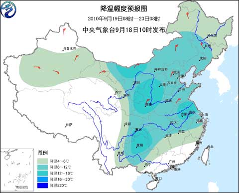 降溫幅度大:受冷空氣影響,我國大部地區(qū)氣溫將下降4~8℃,中東部部分地區(qū)降溫幅度可達(dá)10~14℃,局部可超過15℃。22日和23日早晨,內(nèi)蒙古東部,黑龍江,吉林東部、西部和北部的日最低氣溫將降至2℃以下,部分地區(qū)將有霜凍。東北地區(qū)南部、華北北部和西部日最低氣溫也將降至4~8℃。
