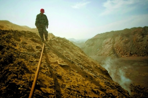 9月5日,記者進(jìn)入烏達(dá)煤田,到處冒著濃煙,空氣中充斥著濃烈的二氧化硫味道。