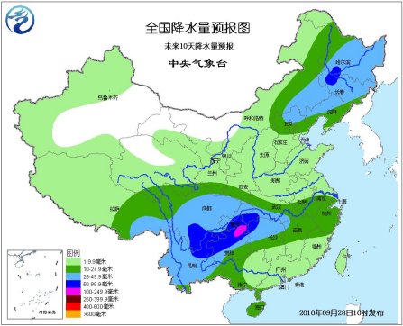 預(yù)計(jì)未來10天,西南地區(qū)東部陰雨天氣較多,降水量一般有30-70毫米,局部地區(qū)有80-120毫米;西北地區(qū)東南部、華北中部和北部、東北、江南北部、華南沿海有10-25毫米,局部有30-70毫米降水。