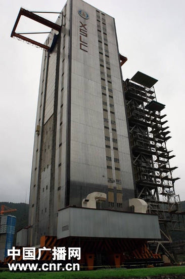 幽靜的山谷中,即將承擔嫦娥二號衛(wèi)星發(fā)射任務的2號發(fā)射塔就在記者面前,在這里,記者做得最多的動作就是——仰起頭,仰望這座高塔。