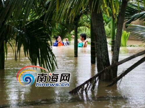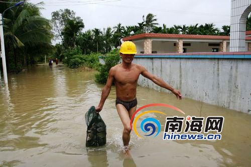 10月7日上午,瓊海市多數(shù)地區(qū)仍浸泡在洪水中,部分村民在被水圍困村莊地勢(shì)較高處“生活”,村民足不出戶可打漁。