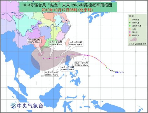 中新網(wǎng)10月17日電 據(jù)中央氣象臺(tái)預(yù)報(bào),今年第13號(hào)強(qiáng)臺(tái)風(fēng)“鲇魚(yú)”于16日晚加強(qiáng)為強(qiáng)臺(tái)風(fēng),17日上午8時(shí)再度加強(qiáng)為超強(qiáng)臺(tái)風(fēng),成為今年最強(qiáng)的臺(tái)風(fēng)。受其影響,未來(lái)三天,中國(guó)南部海區(qū)都將掀起7~9級(jí)的大風(fēng)。