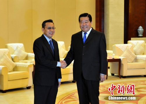 中新網(wǎng)南寧10月19日電(記者 王剛)中國(guó)全國(guó)政協(xié)主席賈慶林19日在廣西南寧會(huì)見(jiàn)前來(lái)參加第七屆中國(guó)—東盟博覽會(huì)和第七屆中國(guó)—東盟商務(wù)與投資峰會(huì)的印尼副總統(tǒng)布迪約諾、老撾副總理阿!诶镆约霸侥细笨偫韽堄乐俚葨|盟國(guó)家領(lǐng)導(dǎo)人。