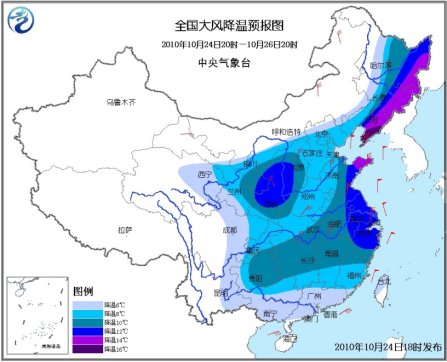 中央氣象臺今天18時繼續(xù)發(fā)布寒潮藍色預(yù)警。預(yù)計,24日20時至26日20時,西北地區(qū)東部、內(nèi)蒙古南部、東北大部、華北、黃淮、江淮、江漢、江南、華南、西南地區(qū)東部等地將出現(xiàn)6~12℃降溫,其中,黑龍江東南部、吉林東部、遼寧東部、山東半島等地的部分地區(qū)降溫幅度可達14~16℃;甘肅大部、青海中東部、寧夏等地將有雨夾雪或小到中雪,其中,甘肅中部、青海東北部等地局地有大到暴雪。