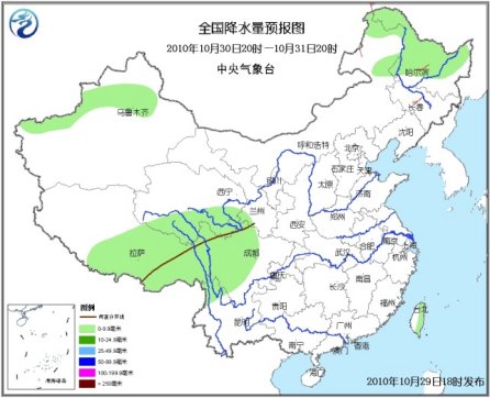 10月30日20時(shí)至31日20時(shí),新疆沿天山地區(qū)、西藏東部、青海東南部、川西高原北部、內(nèi)蒙古東北部、黑龍江中北部有小雨(雪)或雨夾雪;四川中西部、云南西北部、臺(tái)灣東部等地的部分地區(qū)有小雨或陣雨。內(nèi)蒙古東部、東北中北部、華南沿海等地有4~6級(jí)風(fēng)。臺(tái)灣海峽、臺(tái)灣以東洋面和以南海域、南海東北部海域、中部和西南部海域?qū)⒂?~8級(jí)、陣風(fēng)9級(jí)的東北風(fēng)。另外,黃海南部海域、東海北部海域?qū)⒂?~6級(jí)的偏北風(fēng);東海南部海域?qū)⒂?~7級(jí)、陣風(fēng)8級(jí)的東北風(fēng);南海西北部海域、北部灣將有5~7級(jí)的東北風(fēng)。
