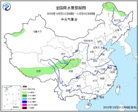 10月31日08時至11月1日08時,新疆南疆盆地西北部、內(nèi)蒙古東北部、黑龍江西北部、西藏南部、青海東南部、甘肅南部、川西高原北部等地有小雨(雪)或雨夾雪;陜西西南部、四川北部等地的部分地區(qū)有小雨或陣雨。內(nèi)蒙古東部、東北地區(qū)等地有4~6級風。臺灣海峽、臺灣以東洋面和以南海域、南海東北部、中部和西南部海域?qū)⒂?~8級、陣風9級的東北風;東海東北部和南部海域、南海西北部海域?qū)⒂?~7級、陣風8級的東北風。