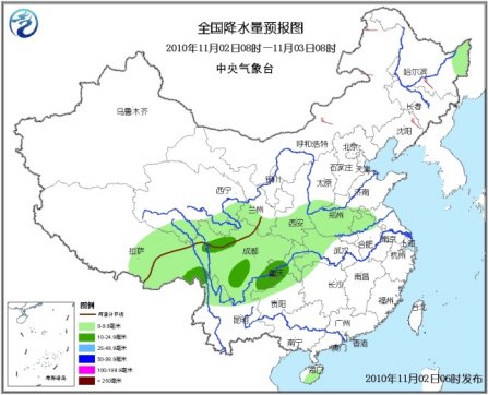 中新網(wǎng)11月2日電 中央氣象臺預(yù)報(bào),未來三天,青藏高原東部多雨雪天氣,今天在西藏東北部、青海東南部、川西高原北部等地的部分地區(qū)有中到大雪,局地暴雪。另外,新疆北部、西北地區(qū)東南部、黑龍江東北部、山西南部、黃淮西部、江漢西部、西南地區(qū)大部等地還會出現(xiàn)小到中雨(雪)或雨夾雪。
