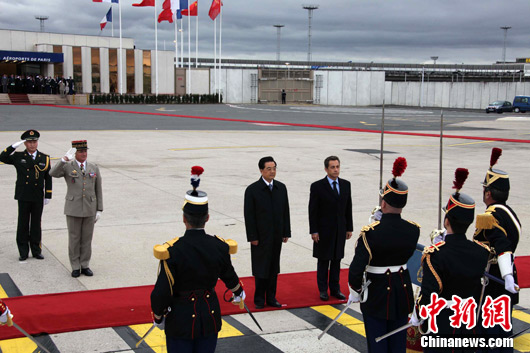 應(yīng)薩科齊邀請(qǐng),胡錦濤今起對(duì)法國(guó)進(jìn)行第二次國(guó)事訪問(wèn)。在機(jī)場(chǎng)發(fā)表的書(shū)面講話中,胡錦濤說(shuō),建交46年來(lái),在雙方共同努力下,中法政治、經(jīng)貿(mào)、教育、科技、文化等領(lǐng)域交流合作取得豐碩成果,為兩國(guó)人民帶來(lái)實(shí)實(shí)在在的利益,也為促進(jìn)世界和平與發(fā)展作出積極貢獻(xiàn)。