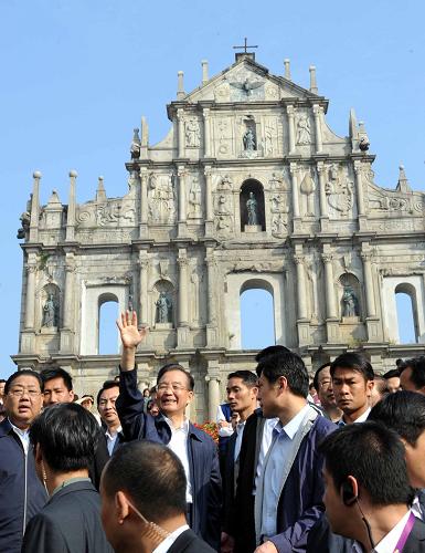 14日,溫家寶在澳門(mén)特別行政區(qū)行政長(zhǎng)官崔世安的陪同下,先后參觀澳門(mén)大炮臺(tái)、澳門(mén)博物館、大三巴牌坊,考察了澳門(mén)生產(chǎn)力暨科技轉(zhuǎn)移中心、澳門(mén)工聯(lián)北區(qū)綜合服務(wù)中心、仁伯爵綜合醫(yī)院、澳門(mén)大學(xué)等機(jī)構(gòu),看望澳門(mén)廣大市民,和大家真情互動(dòng),深切了解澳門(mén)歷史和經(jīng)濟(jì)、社會(huì)發(fā)展情況。他還走訪(fǎng)市民家庭,了解澳門(mén)普通居民的生活現(xiàn)狀。