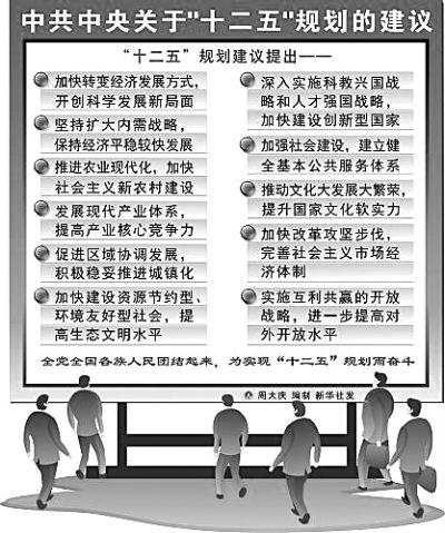 黨的十七屆五中全會通過的《中共中央關(guān)于國民經(jīng)濟和社會發(fā)展第十二個五年規(guī)劃的建議》,為我國“十二五”時期奪取全面建設小康社會新勝利、開創(chuàng)中國特色社會主義事業(yè)新局面,提供了綱領性建議和指導性方針。“十二五”時期,是在科學發(fā)展的道路上繼續(xù)前行,開創(chuàng)科學發(fā)展新局面的重要時期。