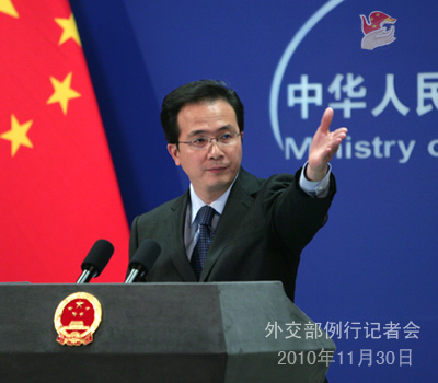 2010年11月30日,外交部發(fā)言人洪磊主持例行記者會(huì)。