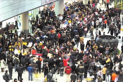 昨天下午,大量乘客滯留在候機(jī)廳內(nèi),延誤通知不斷重播,多數(shù)乘客表示不滿。乘客孫女士氣憤地說,他們一行20人從北京飛往上海,原定上午9點(diǎn)半起飛,已經(jīng)在此處等候了8個(gè)小時(shí),“剛一問,對(duì)方說可能要明天起飛”,此話引起眾人不滿,多人要求機(jī)場方解決食宿問題,但對(duì)方始終稱“需要協(xié)調(diào)”。