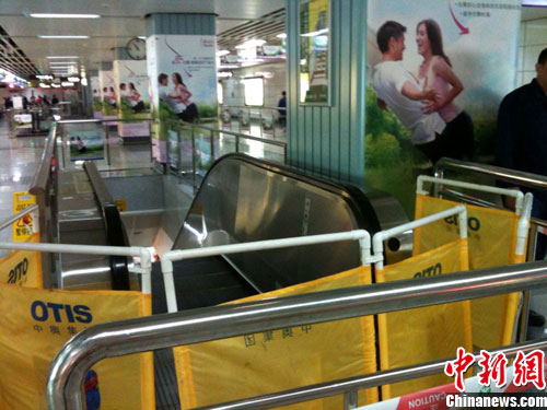 地鐵國(guó)貿(mào)站是雙站臺(tái),發(fā)生事故的是第一層站臺(tái)通往站廳之間的一部OTIS扶手電梯。記者趕到現(xiàn)場(chǎng)時(shí),傷員已經(jīng)被送往醫(yī)院救治,出事電梯被警方封鎖。乘客需走旁邊的樓梯出站。