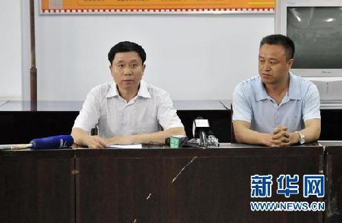 6月3日,長春市政府副秘書長趙顯(左)在通報德惠市米沙子鎮(zhèn)寶源豐禽業(yè)有限公司火災(zāi)事故情況。