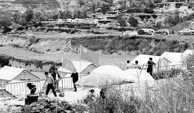 鮮紅的黨旗飄揚在岷縣震區(qū)臨時安置點上。連日來,在社會各界的援助下,岷縣漳縣震區(qū)群眾生活基本得到保障。本報記者 呂亞龍