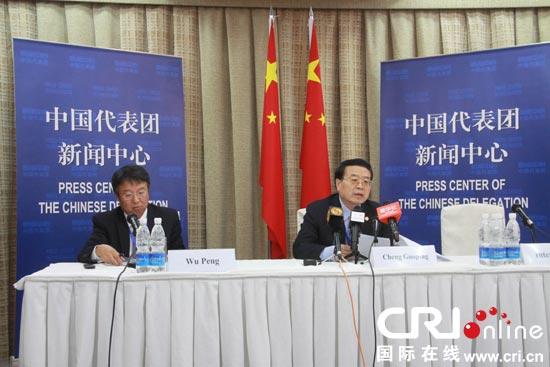 中國外交部副部長程國平(右)召開新聞發(fā)布會