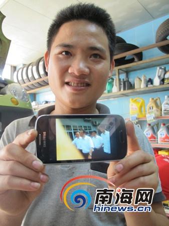 楊巖寶展示李克強(qiáng)總理親切的照片(南海網(wǎng)記者 高鵬攝)