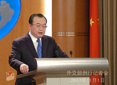 中新網(wǎng)11月1日電 據(jù)外交部網(wǎng)站消息,2007年11月1日下午,外交部發(fā)言人劉建超舉行例行記者會時表示,中美朝三方就六方會談下一階段的有關(guān)工作交換了意見。