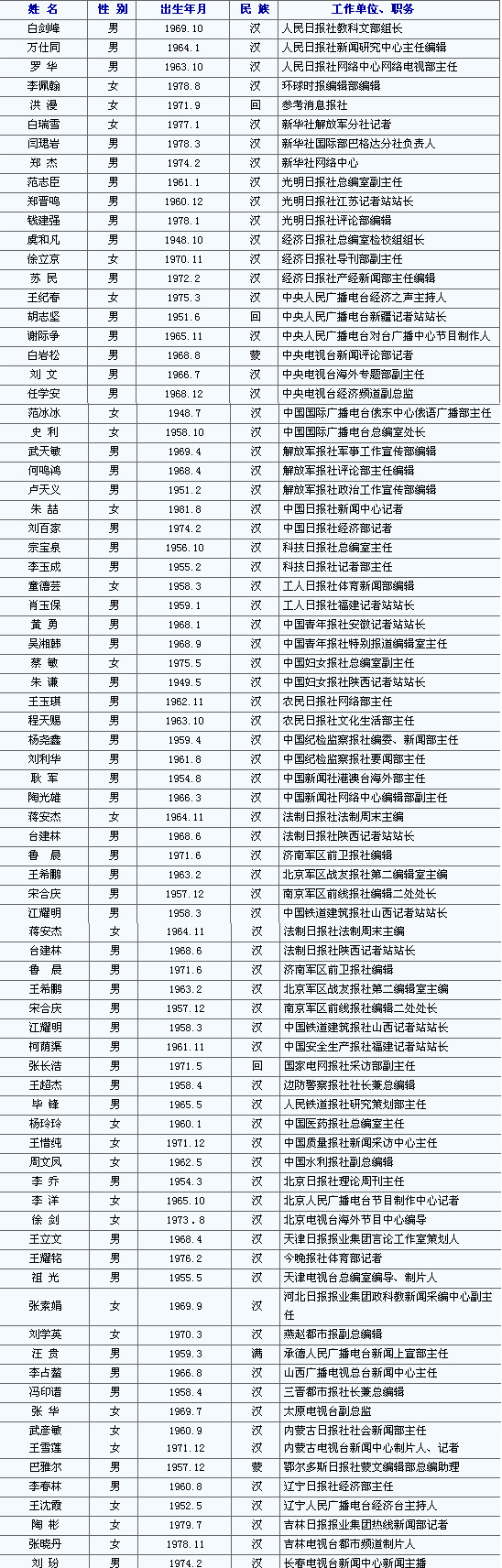 2007年全國(guó)優(yōu)秀新聞工作者名錄(上)