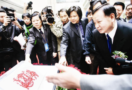 張樹(shù)賢介紹,當(dāng)他在電視畫面上看到胡錦濤總書記剪窗花的情形時(shí),就想到要在湖北舉行的第二屆全國(guó)剪紙藝術(shù)展,希望把胡錦濤總書記的剪紙“請(qǐng)”到湖北來(lái)展出。與定西方面商量后,定西市剪紙協(xié)會(huì)同意將《回娘家》剪紙“借來(lái)”湖北展出,再還回去。