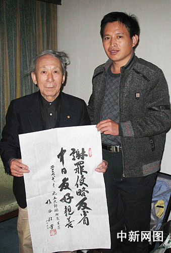 原日本侵華日軍59師團(tuán)45中隊(duì)退伍老兵鹽谷保芳日前再次來到中國山東泰安抗日烈士陵園謝罪,并向陵園敬獻(xiàn)了“謝罪侵略反省,中日友好親善”牌匾,以特殊方式傳達(dá)日本人民致力中日友好的信息。