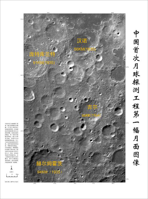 按照目前CE-1衛(wèi)星的飛控計劃和CCD立體相機(jī)的工作安排,在CCD立體相機(jī)所獲取的所有數(shù)據(jù)都可用的前提下,在2008年1月31日前,可獲取不包括月球兩極地區(qū)在內(nèi)(80-90度范圍)的月面其它區(qū)域的圖像數(shù)據(jù)。這樣,第一幅不含極區(qū)的月面二維圖像至少還需半年以后才能制作出來,而三維圖像則需更長的時間。