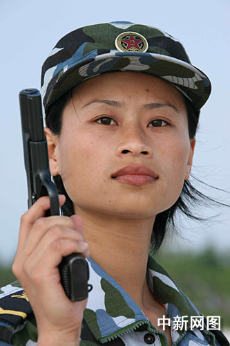 初冬,祖國美麗的寶島西沙群島依然烈日炎炎,強烈的陽光照在銀色沙灘上反射出刺眼的光芒。只見海軍西沙某部綜合訓(xùn)練場上,一名身著海洋迷彩的嬌小女兵快步走到輕武器射擊地線,伴隨著指揮員一聲令下,“嗖”地從腰間拔出手槍,左右開弓,“啪啪”一陣槍響后,正前方50米開外的10面靶牌應(yīng)聲倒地。這位槍槍中的,彈無虛發(fā)的雙槍神射手就是西沙某部女兵班班長黃沛純,也是目前在西沙小島上工作時間最長的女性。她也創(chuàng)造了西沙女兵手槍射擊的最高記錄,左手48環(huán),右手49環(huán)。日前,一位視察西沙部隊的首長看了她的射擊表演后,激動地說:“這個女兵可真不一般!”