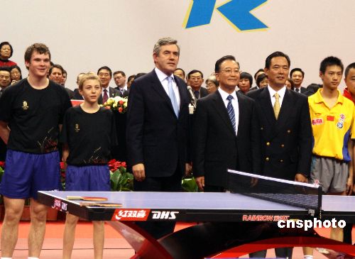 十八日下午,在中國人民大學的“世紀館”內(nèi),一場中英兩國的乒乓球友誼賽吸引來兩位“重量級”觀眾——中國總理溫家寶和在華訪問的英國首相布朗。
