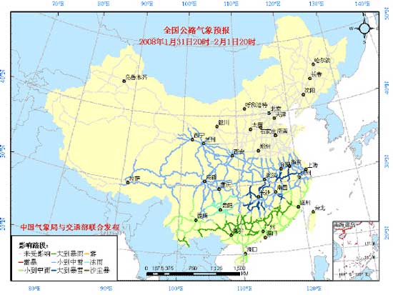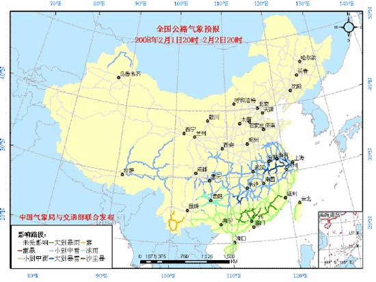 中新網2月1日電 據交通部網站消息,未來兩天,中國南方大部仍有一次明顯雨雪天氣過程。交通部緊急發(fā)布了重大公路氣象預警信息,并提醒受影響地區(qū)的交通主管部門提前部署,積極應對,同時提醒廣大司乘人員注意雪天結冰路面行車安全,合理安排出行。 具體路況如下: