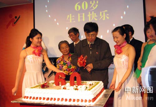 陳毅之子、中國對外友好協(xié)會會長陳昊蘇(中)重回母校,為“紅色幼兒園”切六十華誕生日蛋糕。