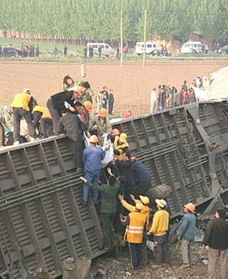 今天凌晨四點(diǎn)四十一分,北京開(kāi)往青島的T195次旅客列車運(yùn)行至山東省境內(nèi)膠濟(jì)鐵路周村至王村間脫線,與煙臺(tái)至徐州的5034次客車相撞。事故發(fā)生后,中國(guó)鐵道部迅速啟動(dòng)緊急預(yù)案。鐵道部部長(zhǎng)劉志軍立即趕赴現(xiàn)場(chǎng)組織指揮,要求全力救治受傷旅客,做好對(duì)事故列車旅客的安置工作,迅速組織救援,以最快速度恢復(fù)正常行車,開(kāi)展事故調(diào)查,防止類似事故再次發(fā)生。