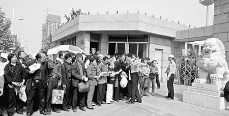 與兩年前一樣,昨天早上7時,記者在現(xiàn)場看到,省法院大門口向西,來訪群眾已自覺排起了200多米的長隊,手里都拿著一份份文書材料。“我在法院門口呆了一夜,掂著早餐也吃不下去!64歲的范淑珍提著行李和早餐站在門口。為了早點(diǎn)見到省法院的領(lǐng)導(dǎo),4日上午,她就從鞏義來到鄭州,早早在省法院門口排隊。新鄉(xiāng)的郭秀香也是提前一天來鄭州,排了一晚上隊。