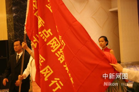 連云港市委副書記、代市長(zhǎng)、組織部長(zhǎng)徐一平為采風(fēng)代表授旗。