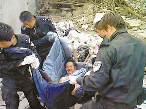 中新網(wǎng)5月25日電 據(jù)中央電視臺(tái)報(bào)道,23日下午4點(diǎn)左右,上海赴川救援特警在綿竹市廣濟(jì)鎮(zhèn)較為偏僻的中心村,發(fā)現(xiàn)了一名老人被壓在倒塌的房屋廢墟里。隊(duì)員們迅速組織附近三十名警力共同展開施救,冒著危險(xiǎn)徒手搬去沉重的橫梁、瓦礫,終于成功解救了老人。這距離地震發(fā)生已經(jīng)將近266個(gè)小時(shí)了。