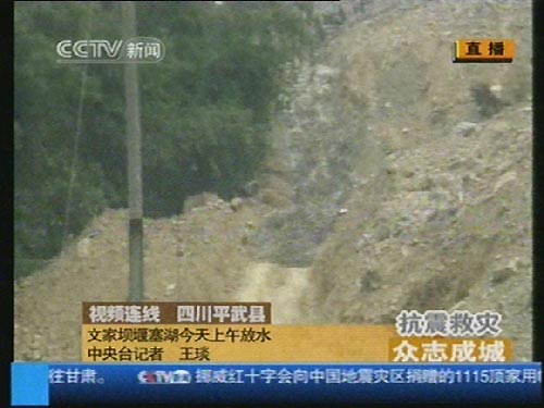 四川震區(qū)平武縣文家壩堰塞湖放水泄洪(圖)
