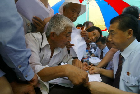 來(lái)上訪的劉女士說(shuō),第一次接訪時(shí)她也知道,但根本沒(méi)抱希望,但聽(tīng)說(shuō)上次許多人反映的問(wèn)題確實(shí)得到了解決,今天就趕過(guò)來(lái)了。省高院工作人員說(shuō),上午10時(shí)剛過(guò),就已經(jīng)發(fā)出3000張排號(hào)單。上午,省高院院長(zhǎng)張立勇接待群眾近百人。因天氣炎熱,接訪現(xiàn)場(chǎng)還專(zhuān)門(mén)準(zhǔn)備了綠豆湯和礦泉水。