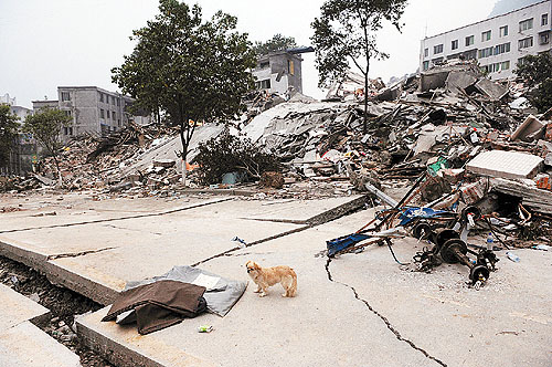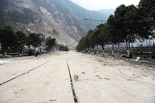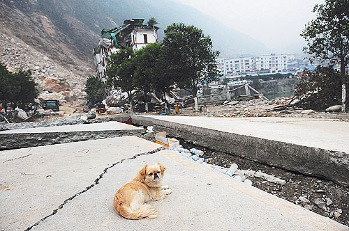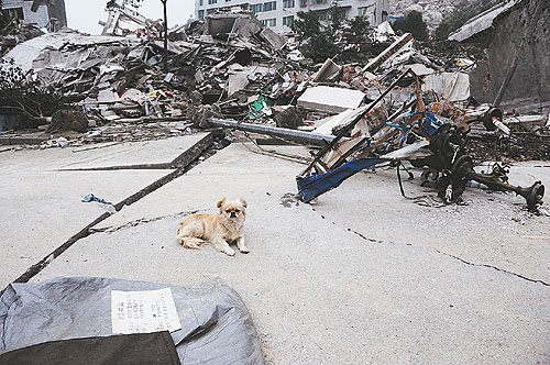 我想和這只小狗合個(gè)影,就以北川這座空空蕩蕩的死城當(dāng)背景:生、死、愛(ài),永恒,在這座死城里融會(huì)貫通。