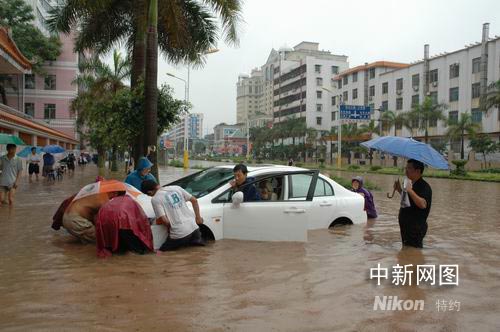 受高空槽和切變線共同影響,六月五日至六日,廣東茂名各地出現(xiàn)明顯強(qiáng)降水過程,全市日降雨量均值八十五毫米。由于降雨量大且強(qiáng),致使茂名市局部地區(qū)出現(xiàn)洪澇和山體滑坡災(zāi)害,并導(dǎo)致高州古丁鎮(zhèn)一名九歲男學(xué)生及一名十四歲女學(xué)生失蹤。據(jù)統(tǒng)計(jì),這次暴雨成災(zāi),茂名全市有六個(gè)縣區(qū)八十一個(gè)鎮(zhèn)約六十萬人受災(zāi),倒塌房屋近千間,直接經(jīng)濟(jì)總損失二億元人民幣。圖為茂名市區(qū)幾成澤國(guó)。 中新社發(fā) 梁盛 攝