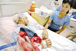 昨天下午,記者在吳川人民醫(yī)院了解到,19名受傷師生中,二年級(jí)的寧康權(quán)和四年級(jí)的寧康高,傷勢(shì)尤為嚴(yán)重,兩人的頭部分別被縫了1針和13針;其余受傷者中,多數(shù)人基本上都是手、腿等部位被割,傷勢(shì)較輕,沒(méi)有人有生命危險(xiǎn)。(記者關(guān)家玉 通訊員林明聰 、王裕攝影報(bào)道)
