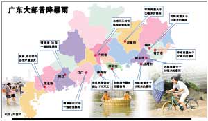 本報訊 (記者黃建華 通訊員粵水婷)記者從廣東省防總獲悉,特大暴雨使粵西地區(qū)江河水位急劇上漲,并先后出現(xiàn)超過或接近警戒線的洪水過程。其中: