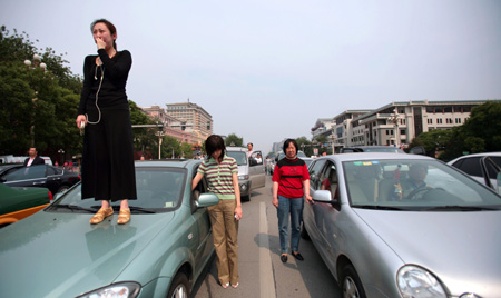 5月19日下午14時28分,北京長安街上,女孩在無聲地哭泣。 法新社