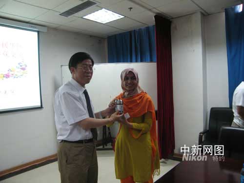 蘭大一院院長將甘肅敦煌的工藝品贈于巴基斯坦醫(yī)療隊(duì)以作紀(jì)念。作者:劉薛梅