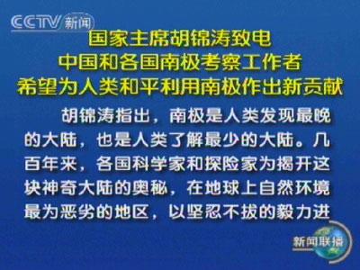 中新網(wǎng)6月21日電 據(jù)中央電視臺(tái)新聞聯(lián)播消息,6月21日是南半球的“冬至”,也是南極洲的重要傳統(tǒng)節(jié)日仲冬節(jié)。今天,中國(guó)國(guó)家主席胡錦濤發(fā)出慰問電,代表中國(guó)政府和中國(guó)人民,并以他個(gè)人名義,向在南極漫長(zhǎng)極夜中勤奮工作、頑強(qiáng)拼搏的中國(guó)南極長(zhǎng)城站、中山站的全體考察隊(duì)員,向奮斗在南極地區(qū)的各國(guó)科學(xué)家和工程技術(shù)人員致以誠(chéng)摯的問候,祝他們仲冬節(jié)快樂。