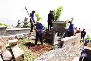 云陽縣有關(guān)部門組織人員對(duì)活人墓進(jìn)行拆除(資料圖片) 記者 冉文 攝