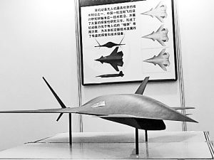與其他展臺前熱鬧的情景不同,中國航空工業(yè)第一集團(tuán)公司沈陽飛機(jī)設(shè)計(jì)研究所的展臺顯得有些冷清,只靜悄悄地?cái)[著一架黑色模型。當(dāng)記者看到機(jī)身上的字樣時(shí),心中不禁一動(dòng),這就是我國未來無人作戰(zhàn)飛機(jī)“暗劍”的模型。