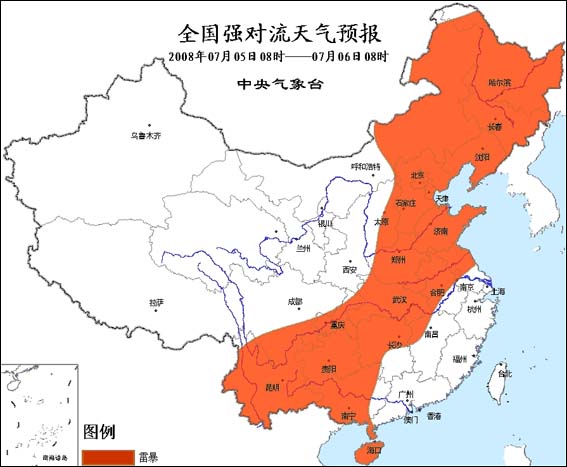 中新網(wǎng)7月5日電 據(jù)問天網(wǎng)消息:中央氣象臺5日6時(shí)繼續(xù)發(fā)布強(qiáng)對流天氣預(yù)報(bào)。