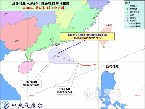 中新網(wǎng)8月5日電 據(jù)中國天氣網(wǎng)消息,中央氣象臺今天早晨六時發(fā)布熱帶低壓消息: